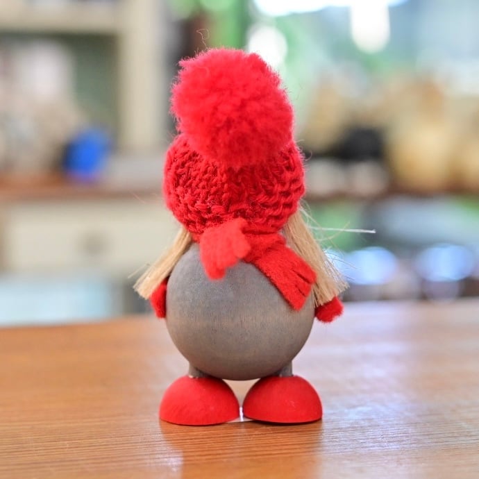 Kewinのトントゥは全てハンドメイドで作られています。表情が微妙に異なっているのも特徴の一つ。コロンとした丸い体に赤いほっぺたの可愛らしいオブジェです。