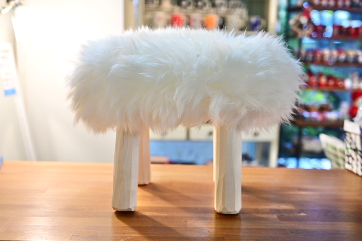 本物の羊の毛を贅沢にたっぷりと使った、触り心地の良いシープのオブジェ。スツールも仲間入り。
