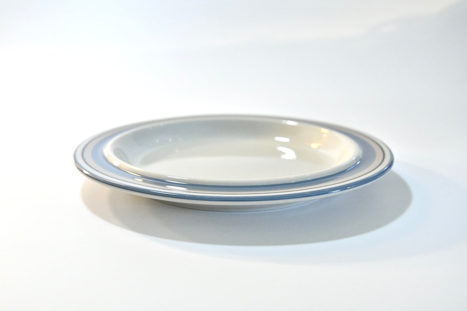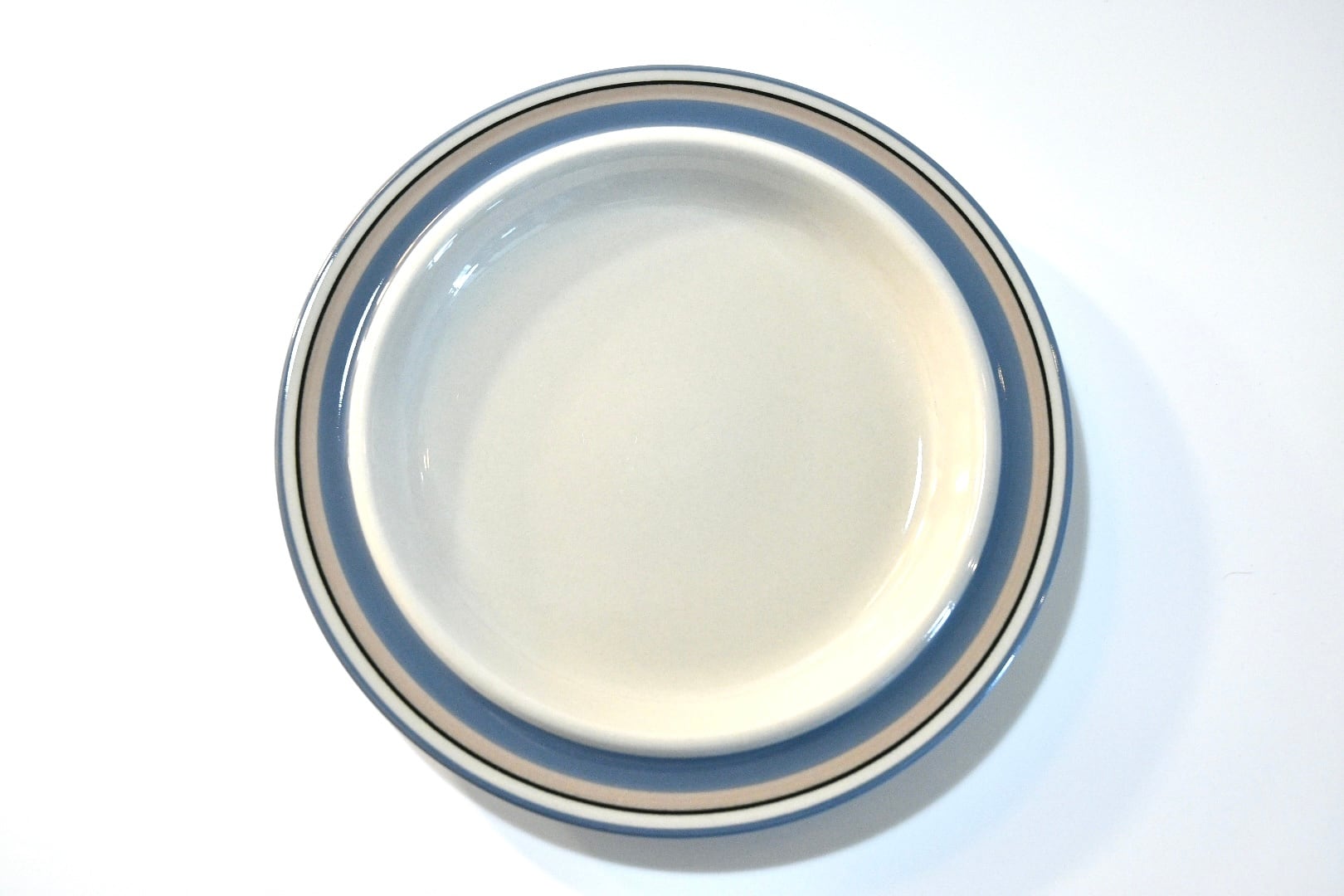 縁に描かれた青や茶色のライン模様が特徴であり、穏やかで優しげな表情を楽しんで頂ける器です。