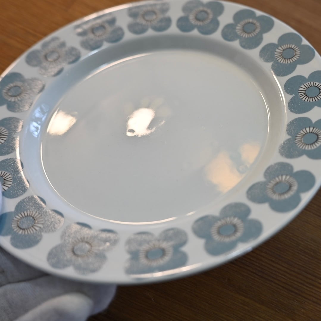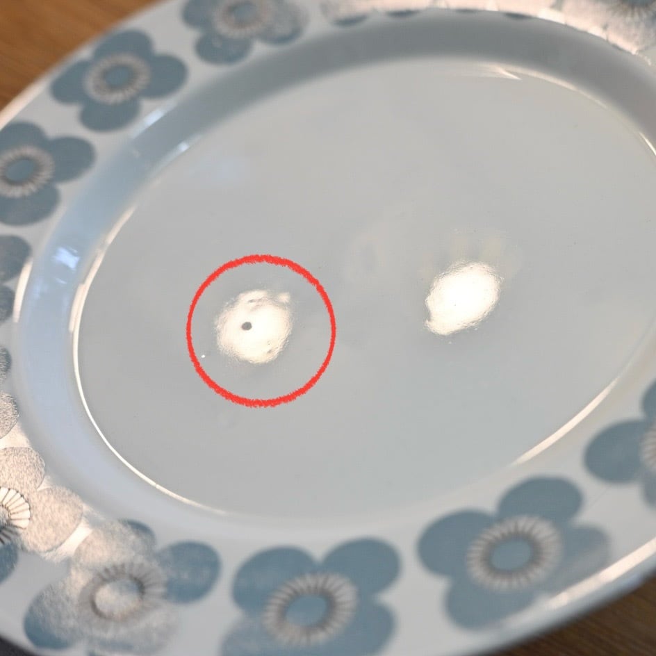 釉薬の上にプリントがされる製造方法のようで、プリントロスや色褪せが発生しやすいシリーズでもあります。プレート中央の平面部分の歪みも見えやすいと言えます。