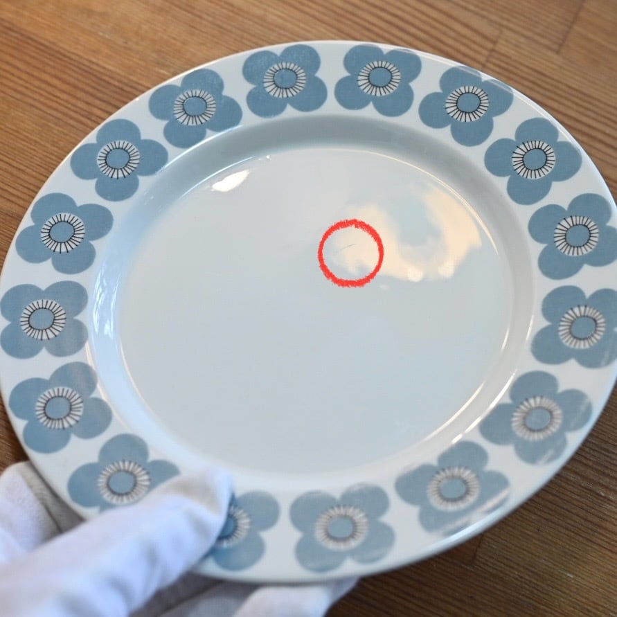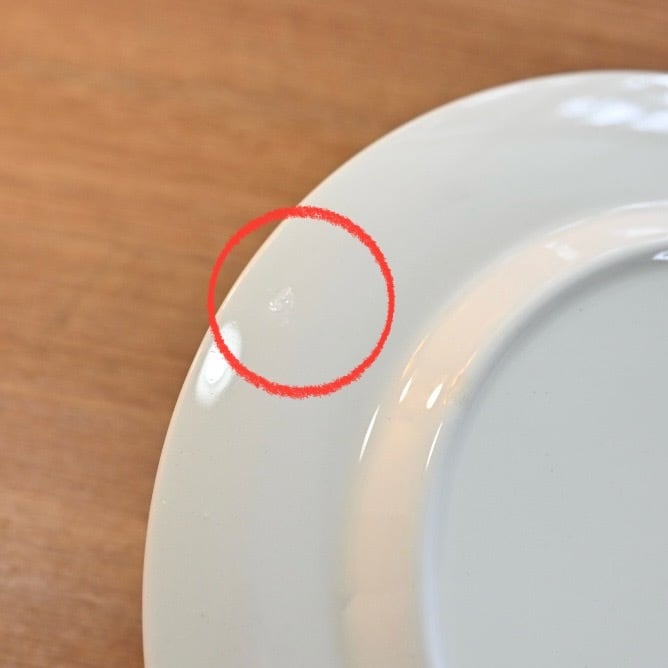 釉薬の上にプリントがされる製造方法のようで、プリントロスや色褪せが発生しやすいシリーズでもあります。プレート中央の平面部分の歪みも見えやすいと言えます。