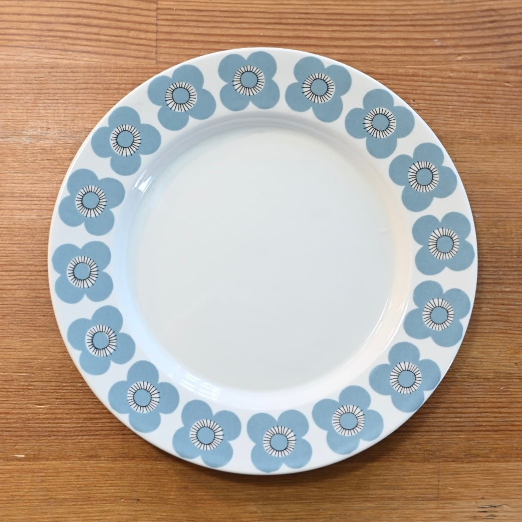 スモーキーブルーと黒のラインの花がぐるっとデザインされている可愛らしいプレートです。ヴェーラは希少で人気が高く、なかなか出会えないシリーズです。