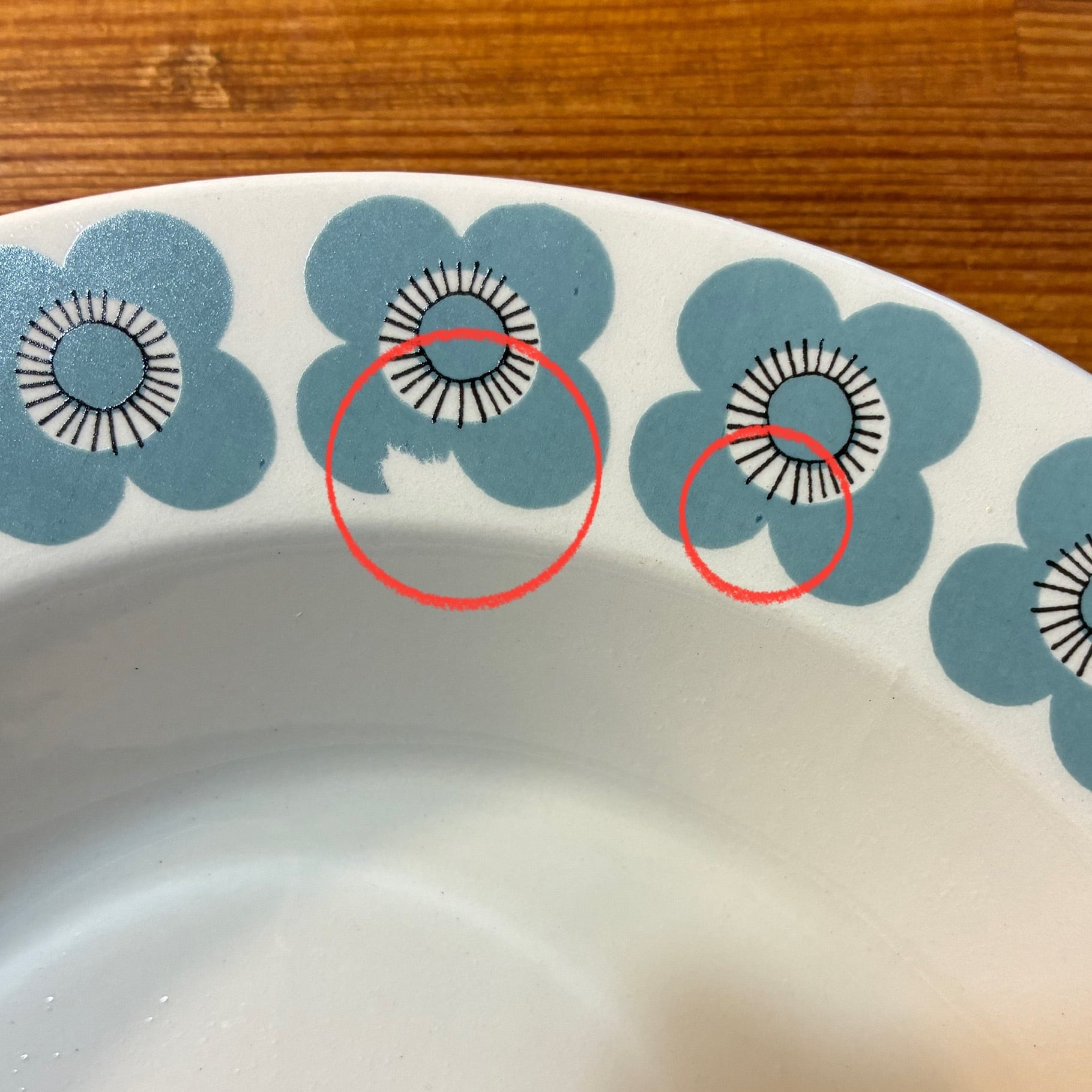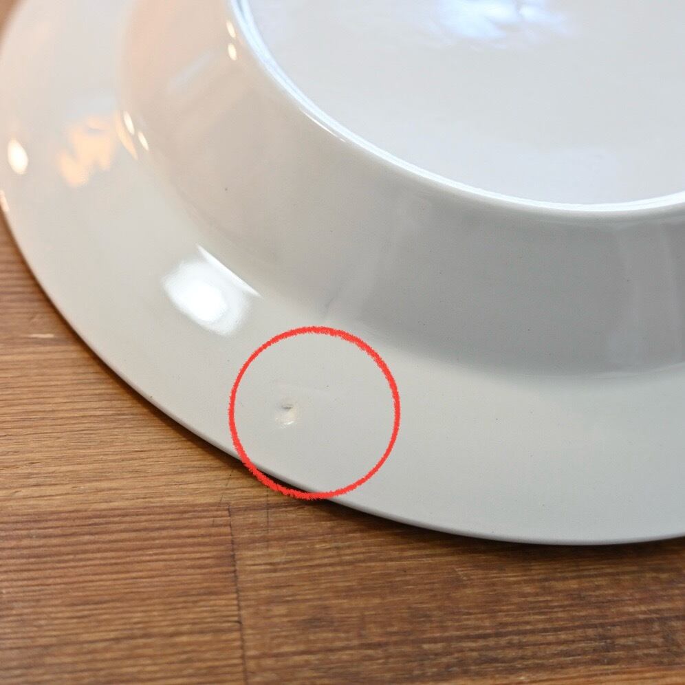 釉薬の上にプリントがされる製造方法のようで、プリントロスや色褪せが発生しやすいシリーズでもあります。プレート中央の平面部分の歪みも見えやすいと言えます。