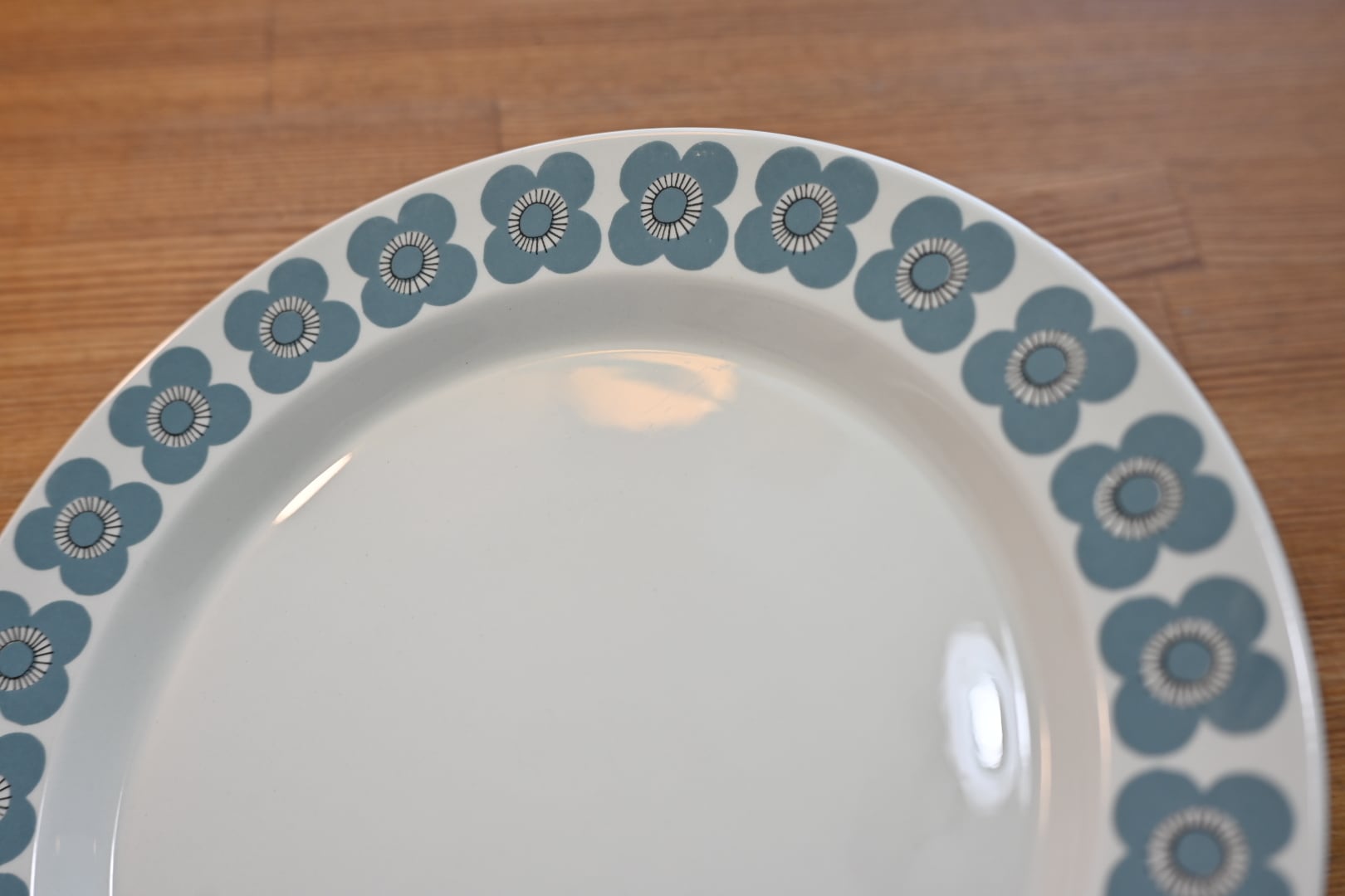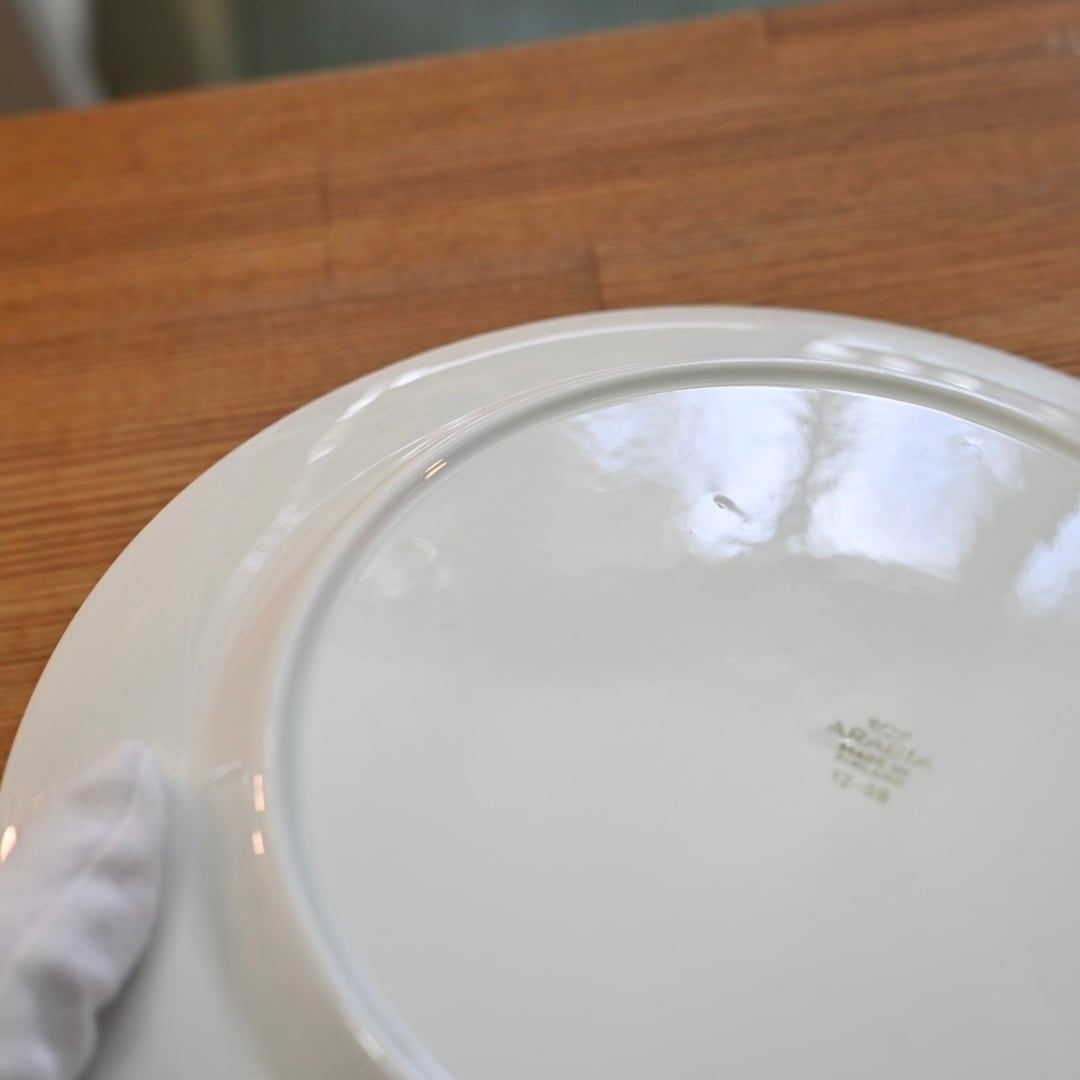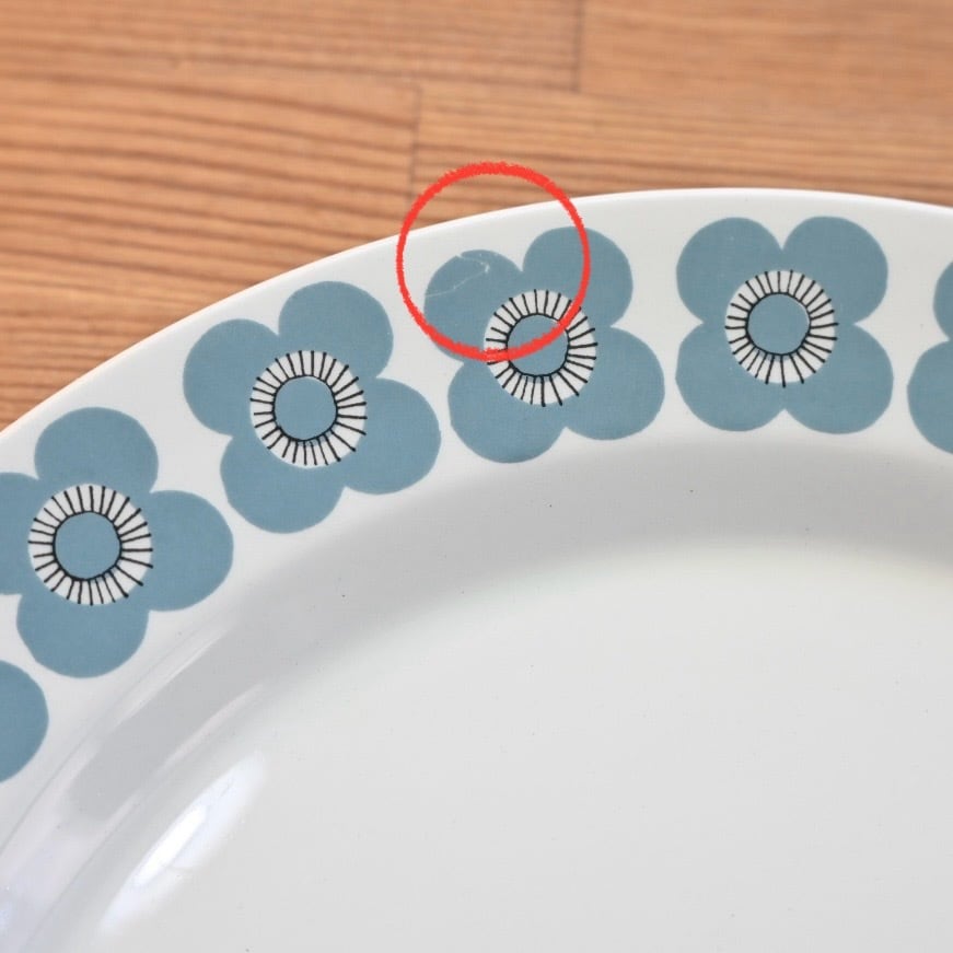 釉薬の上にプリントがされる製造方法のようで、プリントロスや色褪せが発生しやすいシリーズでもあります。プレート中央の平面部分の歪みも見えやすいと言えます。