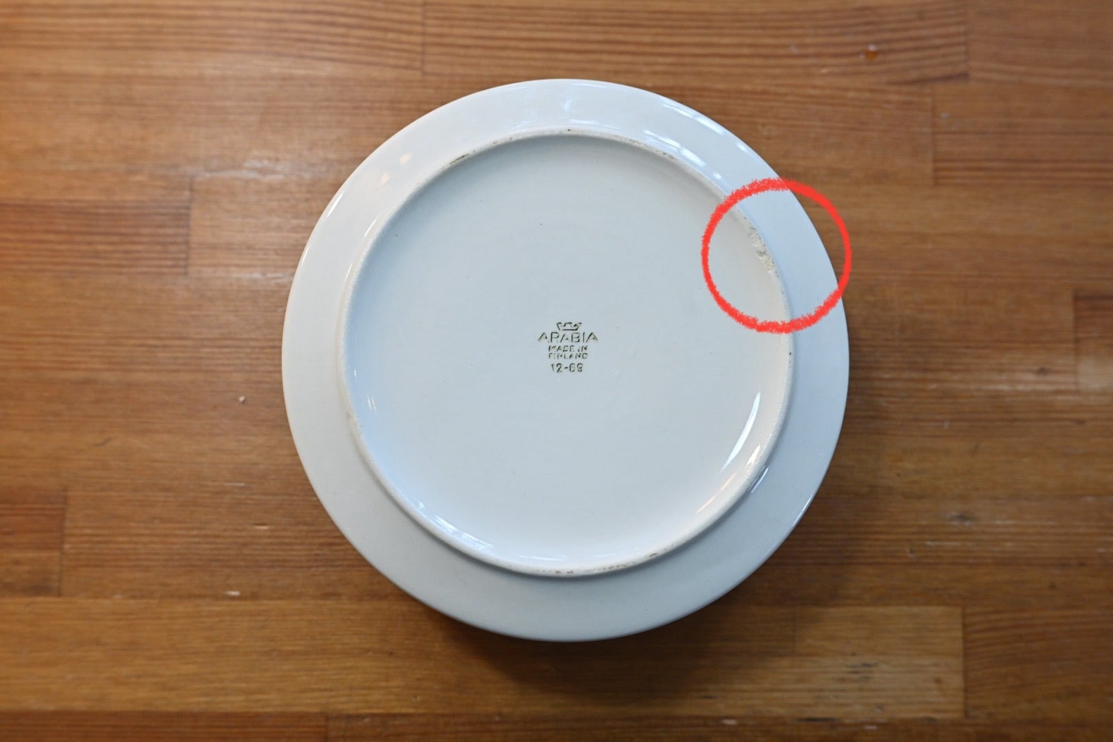 裏面には焼成時に使用する支柱痕がありますがヴィンテージ品には多く見られる状態ですので不良ではございません。