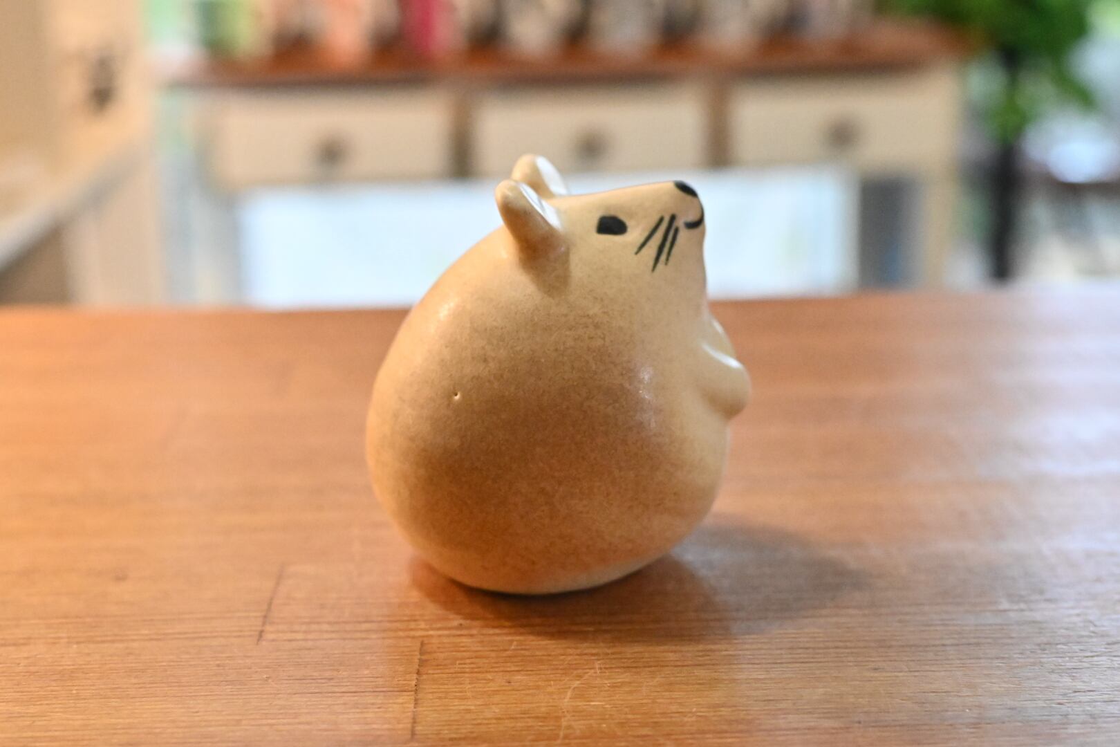ころんとまあるいねずみは、そのやさしげな表情で思わずキュンとしちゃう愛くるしさ。手のひらサイズだから省スペースにも置けて、その場をふわっと和やかな雰囲気にしてくれます。