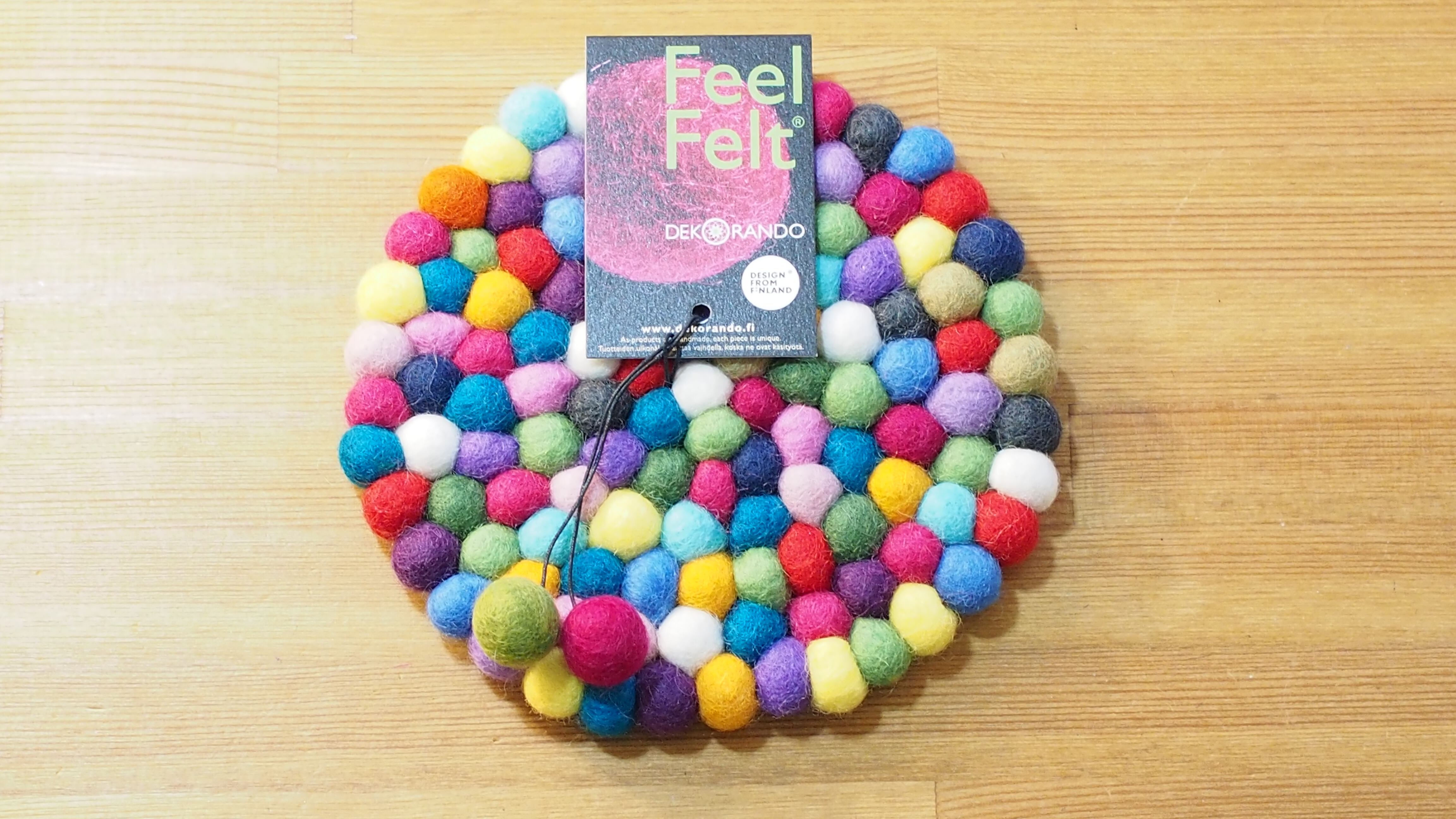 一つ一つたっぷりのピュアウールをぎゅっと丸めて作られた1.5cmのフェルトボールを組み合わせた ポットマット。耐熱、耐久性に優れ、使いやすさを追求したデザインです。毎日使うものだから、シン プルに。丁寧にハンドメイドで作られた良質なアイテムは大切な人への贈り物にもぴったりです。