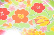 咲き乱れる花々が、色鮮やかに描かれており、可愛らしく明るい、元気な色合いです。